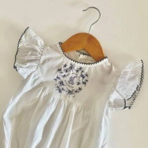 INES BRODERIE ROMPER is one of our most adorable pieces, crafted from pure cotton for ultimate comfort. It features a delicate embroidery design and a front button closure for easy dressing. With long sleeves and elasticated cuffs, it ensures a snug yet comfy fit for your little one.