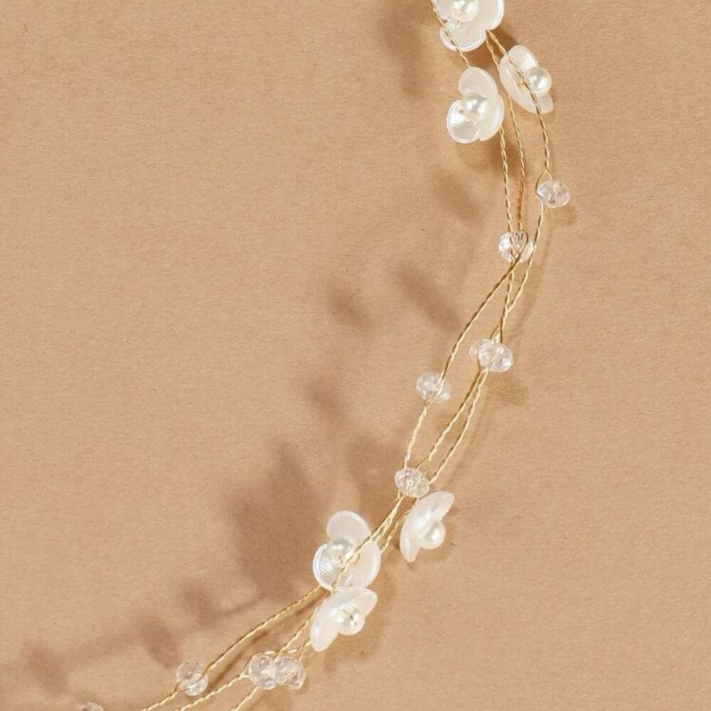 A versatile kid’s headpiece intricately designed with small, delicate flowers and pearls, featuring a charming lace tie at the back for an adjustable fit. Perfect for special moments like baptisms, holy communions, or birthdays, this headpiece adds charm to your little one’s outfit
