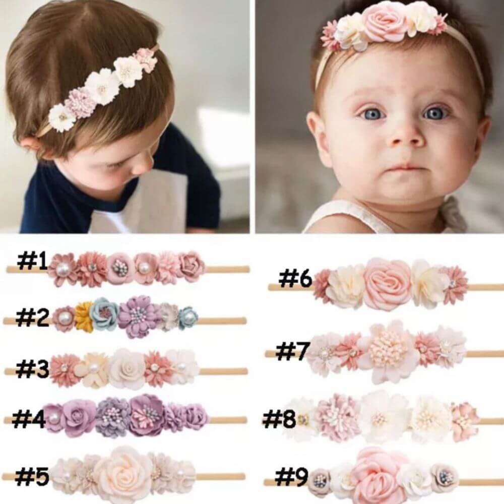 Simply Stunning! FLORAL BOWBAND is made of premium artificial flowers, accented with glitter, leaves and fabulous soft nylon bands. These are suitable for Infants, Babies and Toddlers cause they are more stretchy. Perfect for all special occasions.