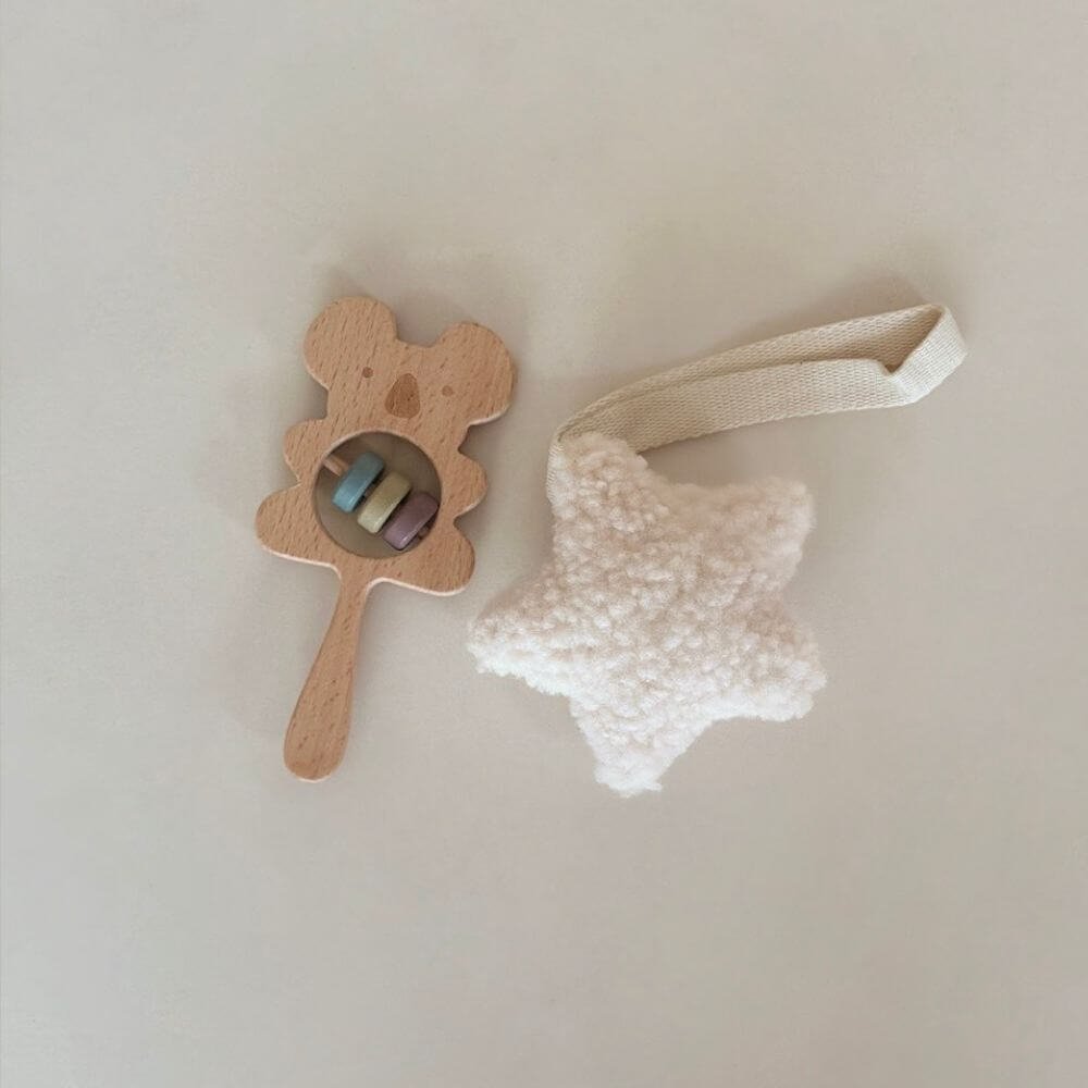 Discover the perfect blend of fun and safety with our wooden koala rattle. Smooth, durable, and easy to grip, it features colorful beads to keep your child entertained while developing their motor skills.