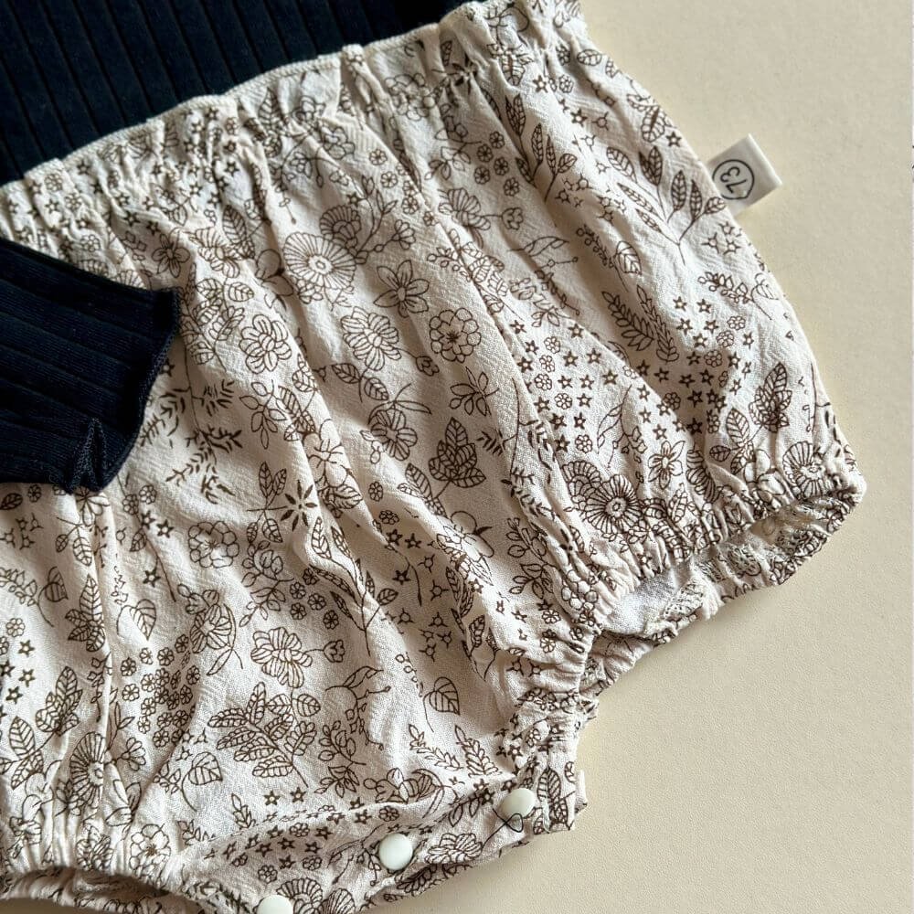 Naomi Romper features a delicate floral pattern that’s perfect for special occasions. Crafted with both comfort and charm in mind, it includes a convenient snap closure for easy changes. Soft, stylish, and sweetly detailed, it’s a must-have piece for picture-perfect moments. (BOW AND SOCKS NOT INCLUDED)
