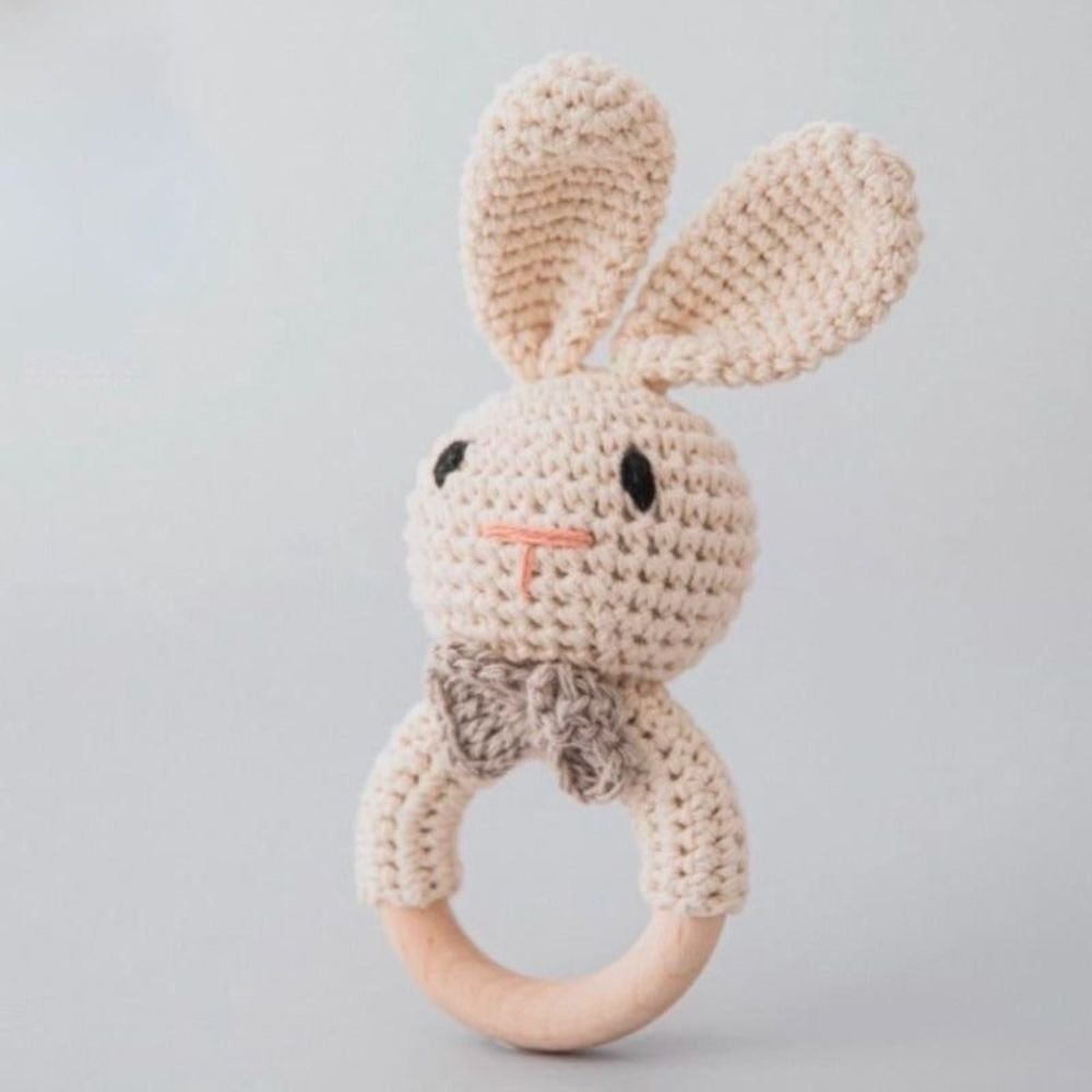 This soft and cuddly companion is designed to soothe sore gums and provide endless entertainment. The wooden ring is durable while the crochet body is gentle on sensitive skin.
