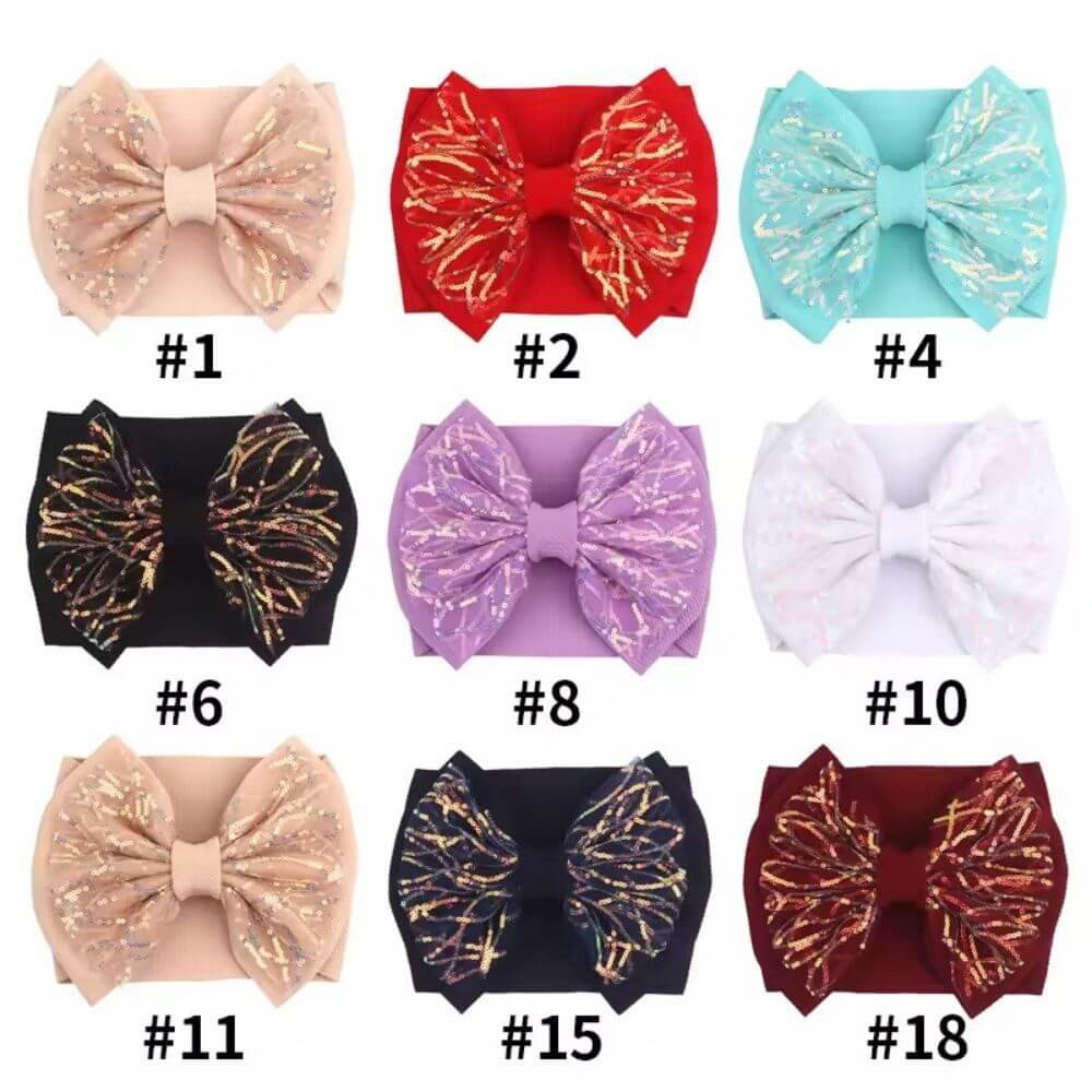 Add a touch of elegance to your little one’s outfit with our textured glitter headband! Each headband features a beautiful bow design with intricate gold sequins, perfect for special occasions or everyday wear. Choose from nine different colors to match your baby’s unique style.